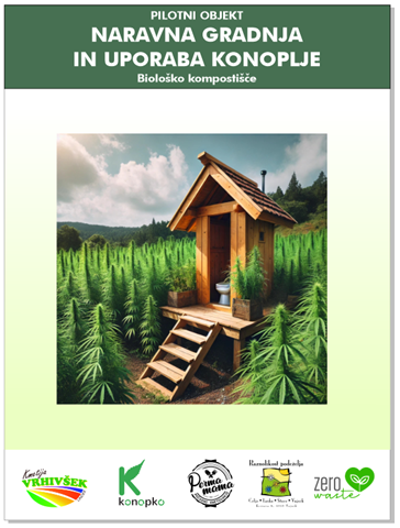 Rezultati in doseženi cilji dela operacije V prvi fazi smo posebno pozornost namenili dijakom Srednje šole za gradbeništvo in varovanje okolja Celje, ki so se v izjemnem številu udeležili strokovnega predavanja. Skoraj 250 dijakinj in dijakov programov gradbeni tehnik in okoljevarstveni tehnik, delno pa tudi študentov višje šole, je prisostvovalo predavanju o potencialu gradnje z industrijsko konopljo. Predavatelji Arnold Ledl (ravnatelj), Sani Okretič Resulbegovič, univ.dipl.inž.arh., Ines Drame (Permamama) in David Geršak, univ.dipl.inž.str. so mladim predstavili nekatera nova področja rabe naravnih surovin, seveda s poudarkom na konoplji. Glavna tema je bila uporaba naravne gradnje v gradbeništvu: uporaba lesa, konoplje, gline, kakor tudi ekonomske, tehnične in družbene prednosti naravne gradnje ter pomen samooskrbe ob uporabi lokalnih surovin. Poslušatelji so dobili vpogled predvsem v uporabnost industrijske konoplje v gradbeništvu in njen neizmeren potencial, ki ga kot industrijska rastlina ponuja. S prikazom vzorcev smo predavanje nadgradili tudi s praktičnimi izdelki. Dodana tema predavanja je bila predstavitev biokompostne tehnologije v manjših straniščih na odročnejših lokacijah, uporaba permakulture in visokodušično potratne vegetacije za podporo kompostiranju. V drugi fazi smo nabavili potrebno opremo (vertikalni mešalec, tovorno prikolico in transportni voziček) ter specifičen material za izvedbo gradnje (namensko apno in konopljino sredico - pezdir). Osnova za pilotni objekt je bila izdelava projektne dokumentacije, v nadaljevanju pa smo v idiličnem okolju kmetije Vrhivšek na Lindeku postavili manjši objekt s funkcijo biološkega kompostišča. Kot skelet oz. statično konstrukcijo smo uporabili lokalni les (smreka), kot polnila sten in strehe pa konopljin beton v debelini 20cm. Dodatna zanimivost objekta je vgrajena tehnologija biokompostiranja z uporabo permakulture in visokodušično potratne vegetacije, konoplja pa se pri tem ponovno pojavlja v obliki posipa (po uporabi).